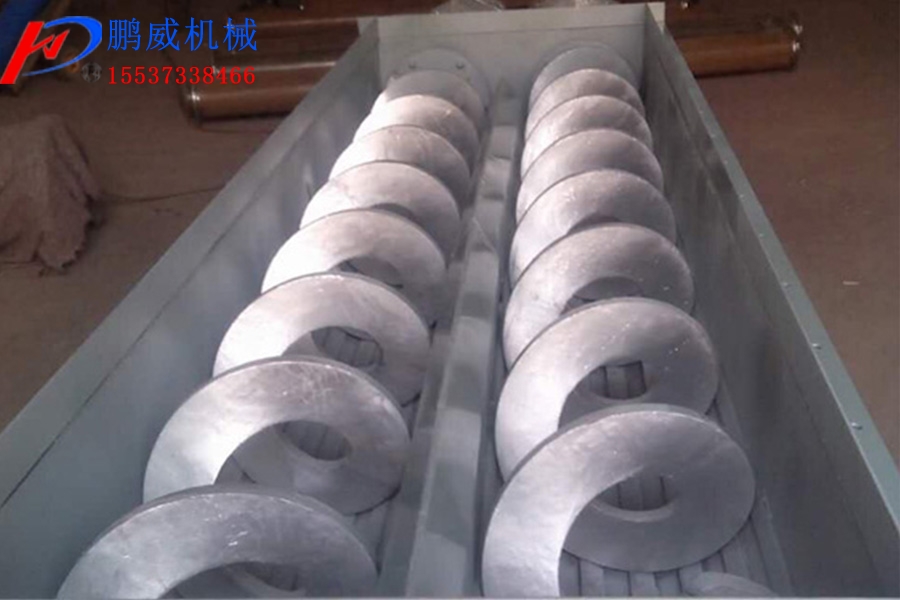 無軸螺旋輸送機在輸送原理上與一般螺旋輸送機基本相同:即仿佛一根旋轉的螺旋軸,發動一個螺母沿其軸向移動一樣,MS無軸螺旋輸送機體相等於螺旋軸,物料相等於螺母,當螺旋體持續改變時則物料也連續輸送。無軸螺旋體為較厚的帶狀葉片,顛末驅動端驅動,中間無軸,螺旋體與機殼內壁底部襯板接觸(滑動)。